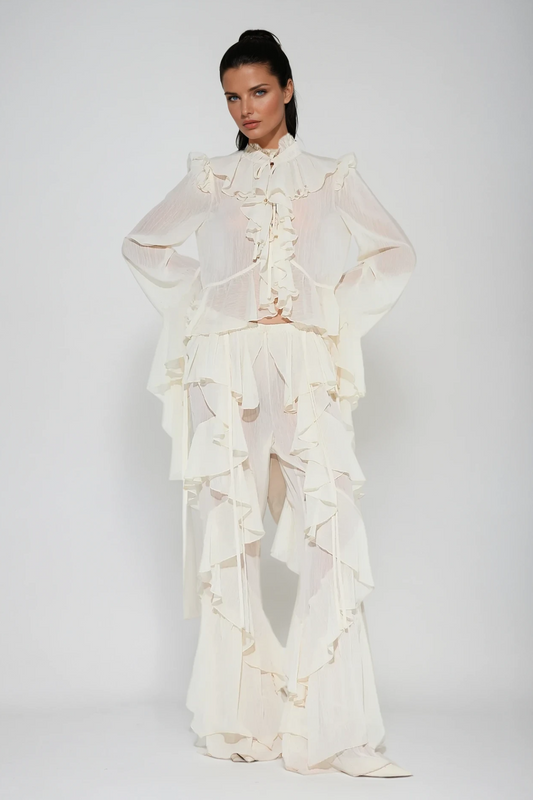 Boyana Asymmetric Lace Up Ruffle Skirt Set